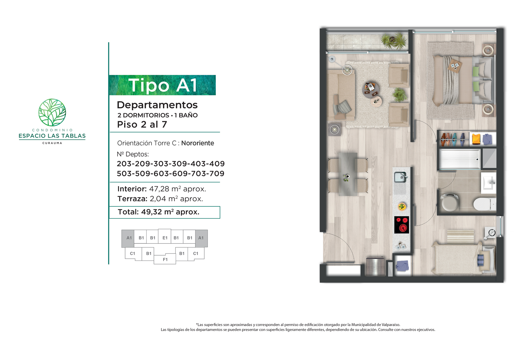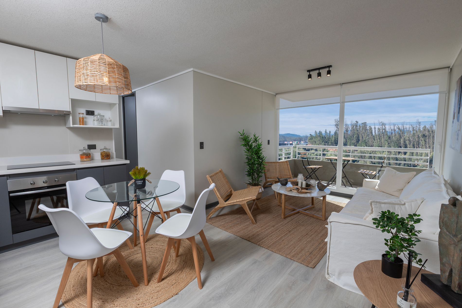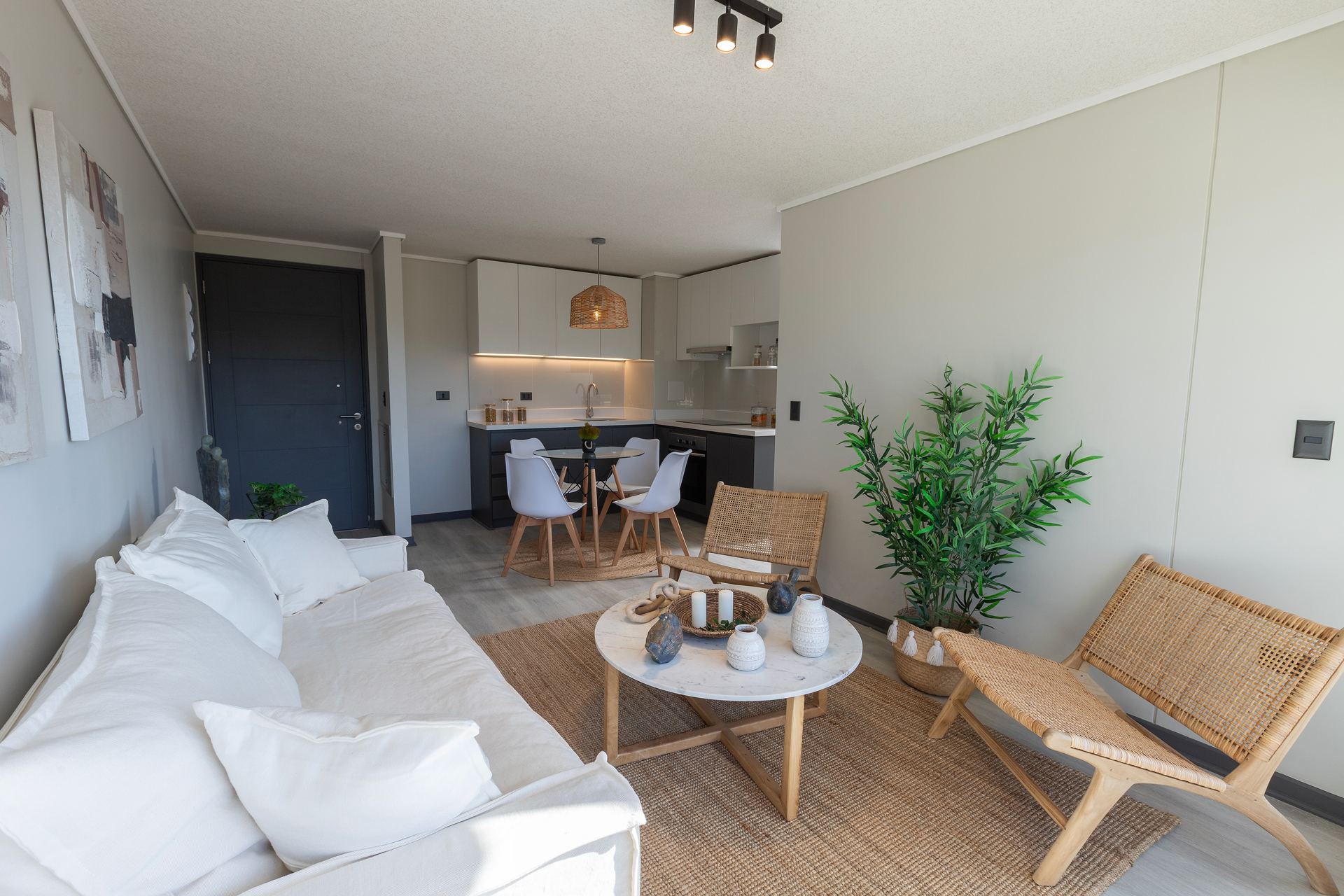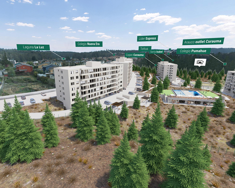 modernos departamentos, y se ubica en el corazón del mejor sector de Curauma, a sólo minutos del Embalse de la Luz, servicios, comercio y educación. El proyecto cuenta con edificios de sólo 7 pisos y departamentos con superficies que van desde los 38 m2 hasta los 60 m2 totales. El proyecto cuenta con un terreno de más de 2 hectáreas rodeado de naturaleza, espacios comunes y seguridad con accesos controlados. |