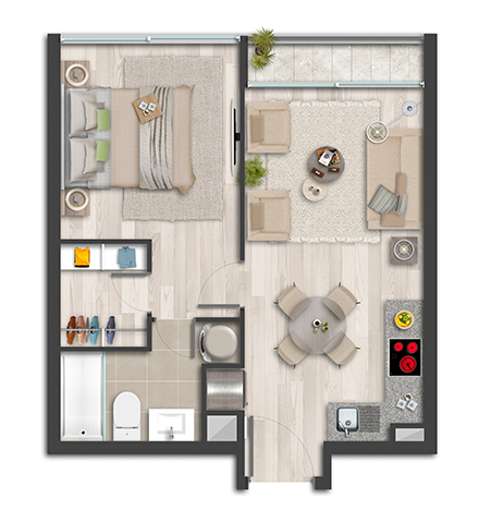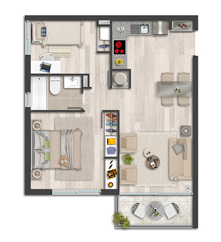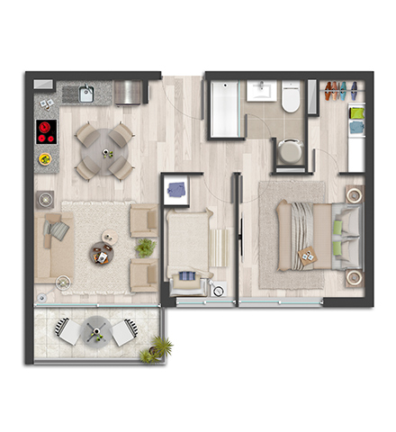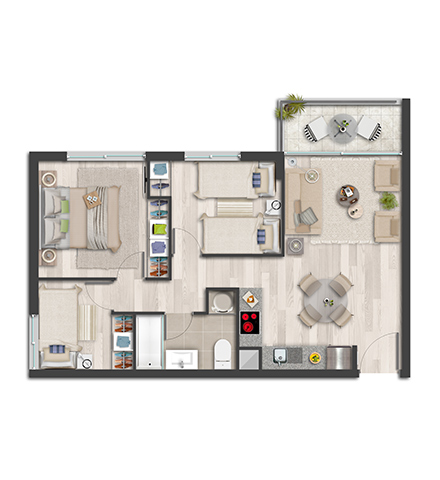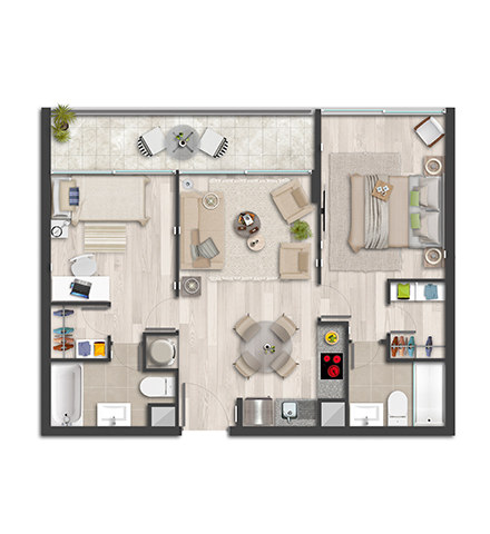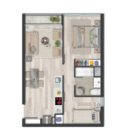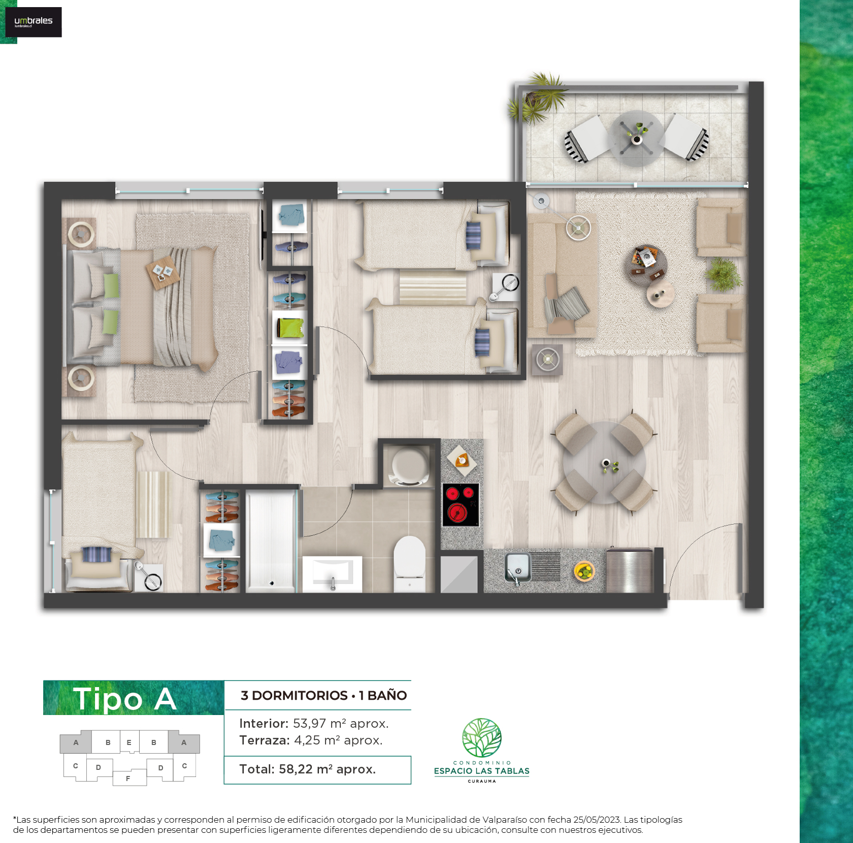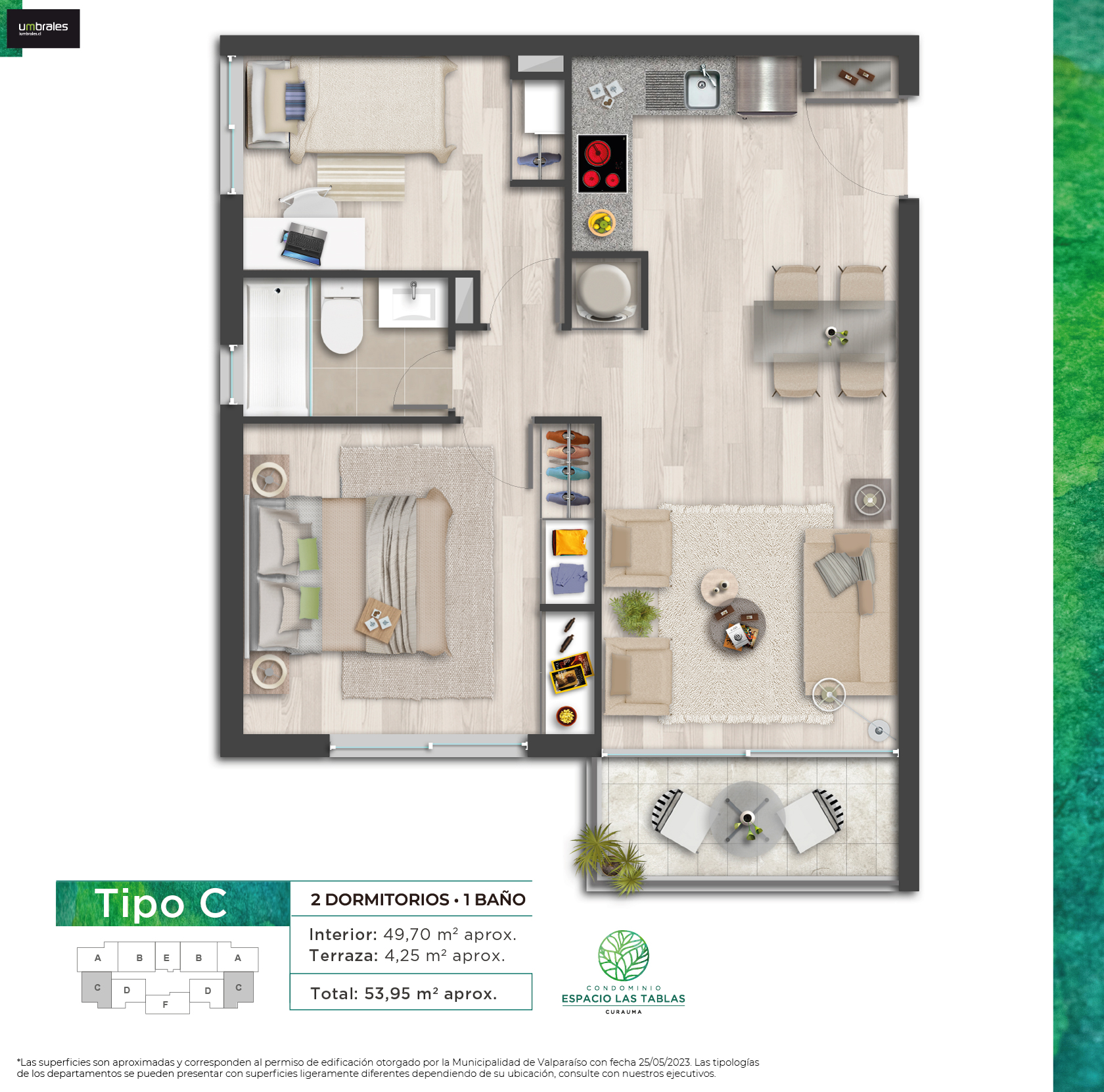 modernos departamentos, y se ubica en el corazón del mejor sector de Curauma, a sólo minutos del Embalse de la Luz, servicios, comercio y educación. El proyecto cuenta con edificios de sólo 7 pisos y departamentos con superficies que van desde los 38 m2 hasta los 60 m2 totales. El proyecto cuenta con un terreno de más de 2 hectáreas rodeado de naturaleza, espacios comunes y seguridad con accesos controlados. |